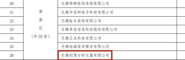 創(chuàng)想儀器被命名為無(wú)錫市AAA級(jí)重合同守信用企業(yè)