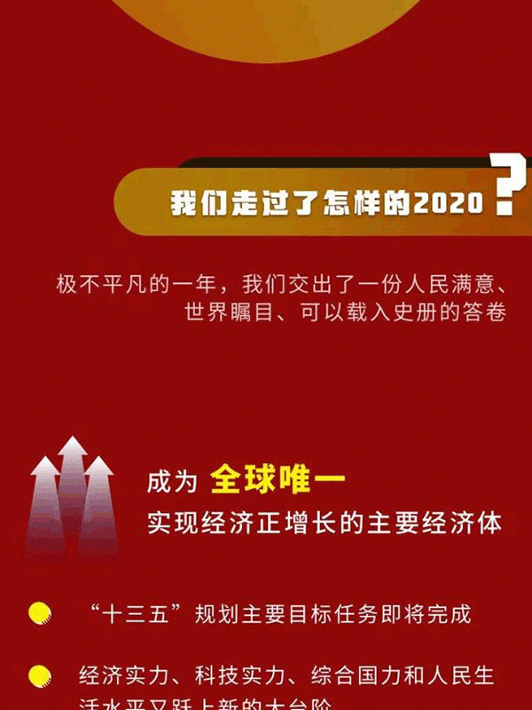 會(huì)議認(rèn)為,今年是新中國(guó)歷史上極不平凡的一年。面對(duì)嚴(yán)峻復(fù)雜的國(guó)際形勢(shì)、艱巨繁重的國(guó)內(nèi)改革發(fā)展穩(wěn)定任務(wù)特別是新冠肺炎疫情的嚴(yán)重沖擊,我們保持戰(zhàn)略定力,準(zhǔn)確判斷形勢(shì),精心謀劃部署,果斷采取行動(dòng),付出艱苦努力,交出了一份人民滿意、世界矚目、可以載入史冊(cè)的答卷。我國(guó)成為全球唯一實(shí)現(xiàn)經(jīng)濟(jì)正增長(zhǎng)的主要經(jīng)濟(jì)體,三大攻堅(jiān)戰(zhàn)取得決定性成就,科技創(chuàng)新取得重大進(jìn)展,改革開放實(shí)現(xiàn)重要突破,民生得到有力保障。這些成績(jī)來之不易,歷經(jīng)艱難險(xiǎn)阻,是以習(xí)近平同志為核心的黨中央堅(jiān)強(qiáng)領(lǐng)導(dǎo)的結(jié)果,是全黨全軍全國(guó)各族人民團(tuán)結(jié)奮戰(zhàn)的結(jié)果。