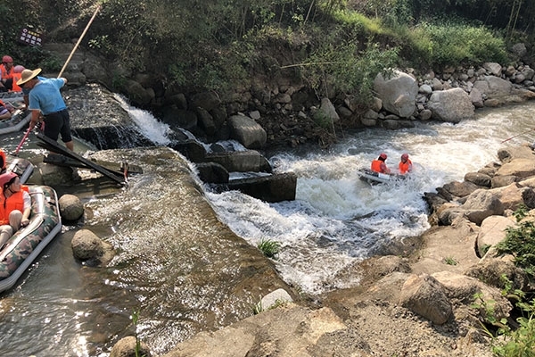 之后迎來(lái)重頭戲——漂流。在安全員的介紹培訓(xùn)后,男女一組坐上了氣墊筏,在等待開閘漂流的時(shí)間,拋棄了身份,性別,打起了水仗,不得不說這是加深同事感情的不二法門。300米的落差,跟隨水流,一路向下,打著水仗,嬉嬉鬧鬧,即便全身濕透,仍然玩的不亦樂乎。