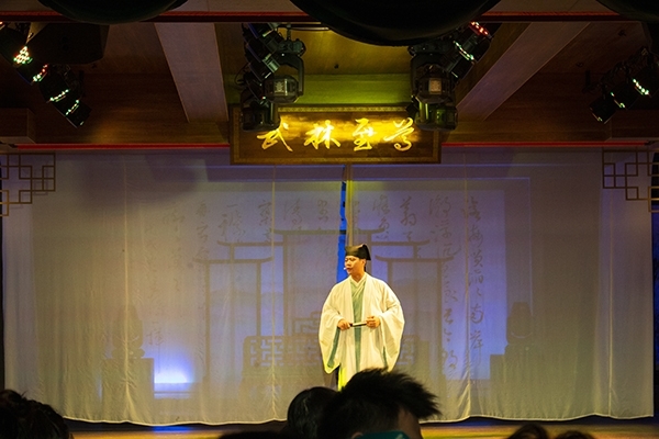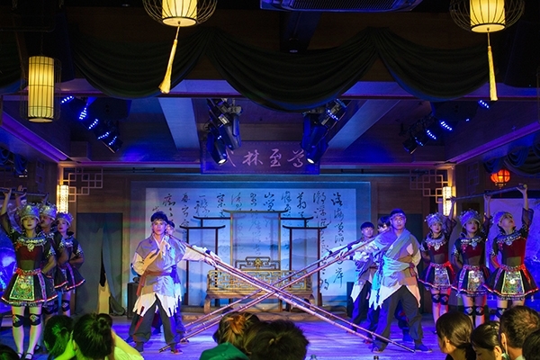 “北冥有魚,其名為鯤。鯤之大,不知其幾千里也......”隨著莊周的《逍遙游》緩緩誦來,演出開始了,演出者著華服,為到場嘉賓奉獻(xiàn)了一場精彩的演出。