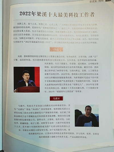 “2022年梁溪十大最美科技工作者”近日揭曉,創(chuàng)想儀器馬建州總經理與常青,楊嘉輝,吳超,錢仕全,倪長輝,周文宇,蔣磊,楊賢,馬騰飛等10人,都是來自科研生產一線的科技工作者,榮獲此稱號。