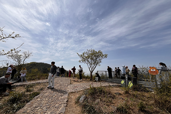 春風(fēng)裹挾著草木的清氣,在耳畔絮語(yǔ)。天朗氣清,同事們身著輕便裝束,三三兩兩結(jié)伴而行,起初石階尚算平緩,還能輕松談笑。行至半路,領(lǐng)頭的幾個(gè)年輕人早已不見(jiàn)蹤影,中間的一撥走走停停,不時(shí)掏出手機(jī)拍照,或是扶著膝蓋喘幾口粗氣。落在后頭的幾位,索性尋了塊平整的石頭坐下,掏出水壺慢飲,倒像是在自家庭院納涼。