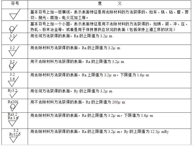 二、表面粗糙度符號(hào)(見(jiàn)表1-1)表1-1