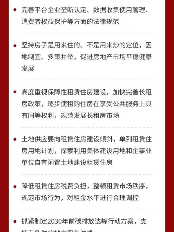 六是強(qiáng)化反壟斷和防止資本無序擴(kuò)張。反壟斷、反不正當(dāng)競(jìng)爭(zhēng),是完善社會(huì)主義市場(chǎng)經(jīng)濟(jì)體制、推動(dòng)高質(zhì)量發(fā)展的內(nèi)在要求。國(guó)家支持平臺(tái)企業(yè)創(chuàng)新發(fā)展、增強(qiáng)國(guó)際競(jìng)爭(zhēng)力,支持公有制經(jīng)濟(jì)和非公有制經(jīng)濟(jì)共同發(fā)展,同時(shí)要依法規(guī)范發(fā)展,健全數(shù)字規(guī)則。要完善平臺(tái)企業(yè)壟斷認(rèn)定、數(shù)據(jù)收集使用管理、消費(fèi)者權(quán)益保護(hù)等方面的法律規(guī)范。要加強(qiáng)規(guī)制,提升監(jiān)管能力,堅(jiān)決反對(duì)壟斷和不正當(dāng)競(jìng)爭(zhēng)行為。金融創(chuàng)新必須在審慎監(jiān)管的前提下進(jìn)行。