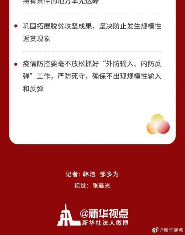 會(huì)議指出,在肯定成績(jī)的同時(shí),必須清醒看到,疫情變化和外部環(huán)境存在諸多不確定性,我國(guó)經(jīng)濟(jì)恢復(fù)基礎(chǔ)尚不牢固。明年世界經(jīng)濟(jì)形勢(shì)仍然復(fù)雜嚴(yán)峻,復(fù)蘇不穩(wěn)定不平衡,疫情沖擊導(dǎo)致的各類衍生風(fēng)險(xiǎn)不容忽視。要增強(qiáng)憂患意識(shí),堅(jiān)定必勝信心,推動(dòng)經(jīng)濟(jì)持續(xù)恢復(fù)和高質(zhì)量發(fā)展。要辦好自己的事,堅(jiān)持底線思維,提高風(fēng)險(xiǎn)預(yù)見預(yù)判能力,嚴(yán)密防范各種風(fēng)險(xiǎn)挑戰(zhàn)。要繼續(xù)高舉多邊主義旗幟,積極參與全球治理改革完善,推動(dòng)構(gòu)建人類命運(yùn)共同體。