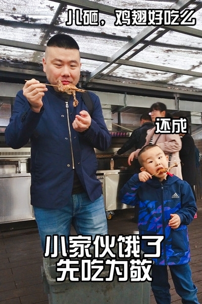 嗯嗯,看這架勢,小楊同學(xué)是真餓了,多吃肉,長高點,往豎里長,可別像你爸,往橫里長了。
