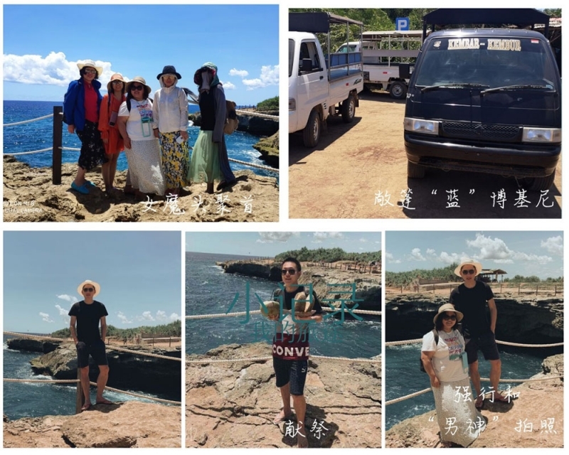 烏魯瓦圖斷崖位于巴厘島的最南端,是我們此行的最后一站,沿途的猴子據(jù)說會搶游客的帽子和眼鏡,讓我們一路有些忐忑,生怕遭遇這些“劫匪”。當我們終于站在斷崖的最高處,遠處海平線和天相接,海色融于天空,在別處很難看到如此開闊的海平線,頗為壯觀。而斷崖下水石相搏,浪花翻涌,又別是一番景致。大家紛紛駐足拍照,而見到金發(fā)美女就求合影的馬工更是沒有放過這個絕好的機會,和三位美女留影合照,熾烈的陽光下,馬工漆黑的膚色優(yōu)勢仿佛也沒成功搶鏡。