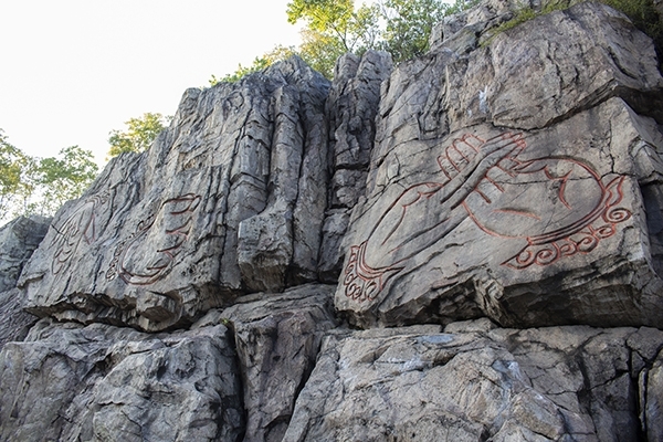 艮石陣石壁內(nèi)的印上了道家手訣,一共9個,這手訣用來祈福,驅(qū)魔,在陽光下,更是感覺到一股神秘的色彩。