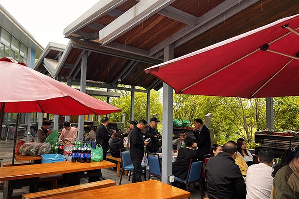 同事們圍坐在一起,分享著美食與歡笑。雨水打在樹(shù)葉上,發(fā)出沙沙的聲響,仿佛是大自然的和聲,為我們的聚會(huì)增添了幾分浪漫與詩(shī)意。雨水似乎也被我們的歡樂(lè)感染,輕輕地拍打著地面,仿佛在為我們鼓掌。