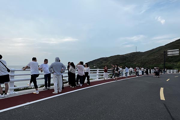 踏上嵊泗本島,入住稍作休整后,我們便迫不及待地投入它的懷抱。東海漁村的古樸與左岸公路的浪漫交織成一幅動人的畫卷。沿著海岸線漫步,看夕陽將海面染成金黃,平日里在辦公室嚴(yán)謹(jǐn)專注的同事們,此刻都是閑庭信步的旅人,笑容格外燦爛。