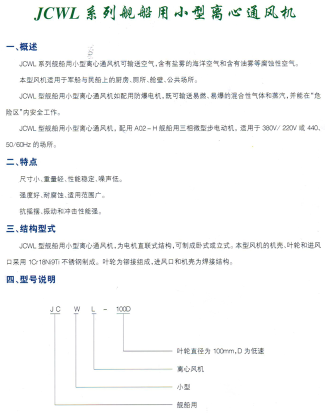 首頁 > 產(chǎn)品信息 > 船用風(fēng)機(jī) > 艦船用小型離心通風(fēng)機(jī) > JCWL艦船用小型離心通風(fēng)機(jī)